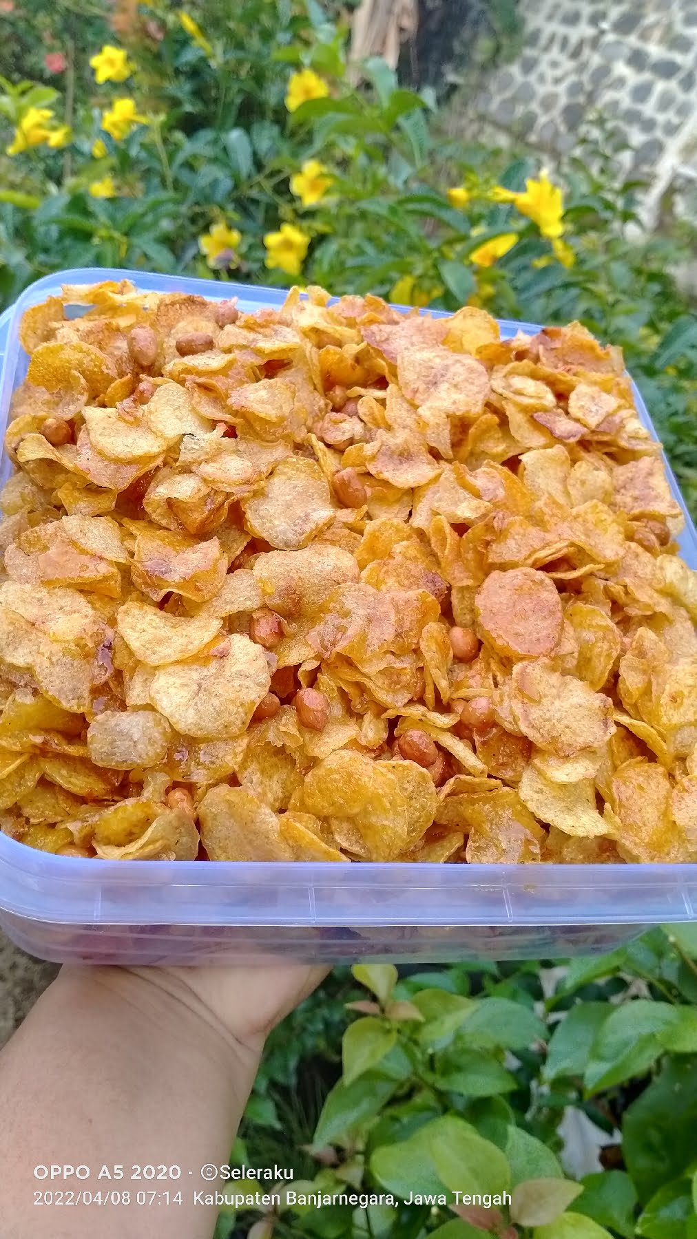 Olahan yang berbahan baku dari kentang pilihan di serut tipis untuk menciptakan rasa sensasi sendiri dengan paduan kacang tanah pas banget untuk cemilan juga lauk di temani nasi hangat.